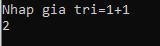 Thực hiện nhập giá trị 1+1, ta thấy chương trình thực thi giá trị ta nhập vào: