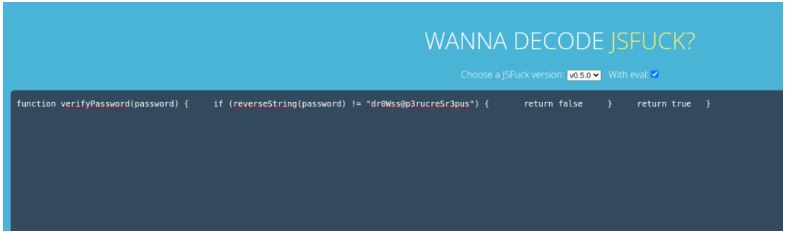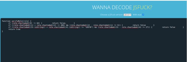 - Nổi bật lên là 4 file js được link vào, mở ra xem thì thấy nó đều bị mã hóa cả. Sau 1 thời gian research cộng với đề bài gợi ý thì mình biết được nó được mã hóa bằng JSFuck, giờ thì giải mã ra thôi.