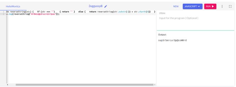 - Chạy code để đảo ngược lại thì ta được password là sup3rSercur3p@ssW0rd