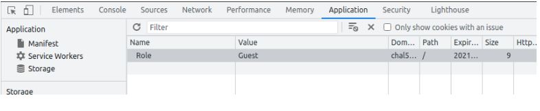 - Giờ mở cookie lên trong phần Application thì thấy rằng role hiện tại đang là Guest