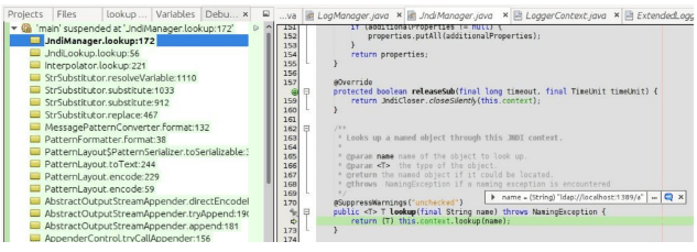 (“${jndi:…}”), log4j2 gọi đến phương thức JndiLookup.lookup() và truyền vào tham