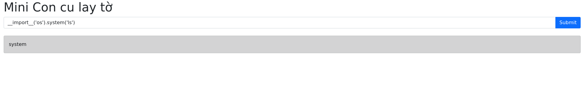 Sau mội hồi fuzzing mình tìm được server dùng Python phiên bản 3.8.12. Như vậy, mình đoán backend code như sau: Họ dùng hàm eval() trong Python để tính kết quả trong request gửi lên, và trả về cho chúng ta kết quả thu được. Việc sử dụng hàm này là vô cùng nguy hiểm, và mình nghĩ ngay đến việc khai thác lỗi Command Injection. Bạn đọc có thể tìm hiểu thêm ở đây.
