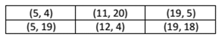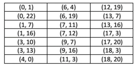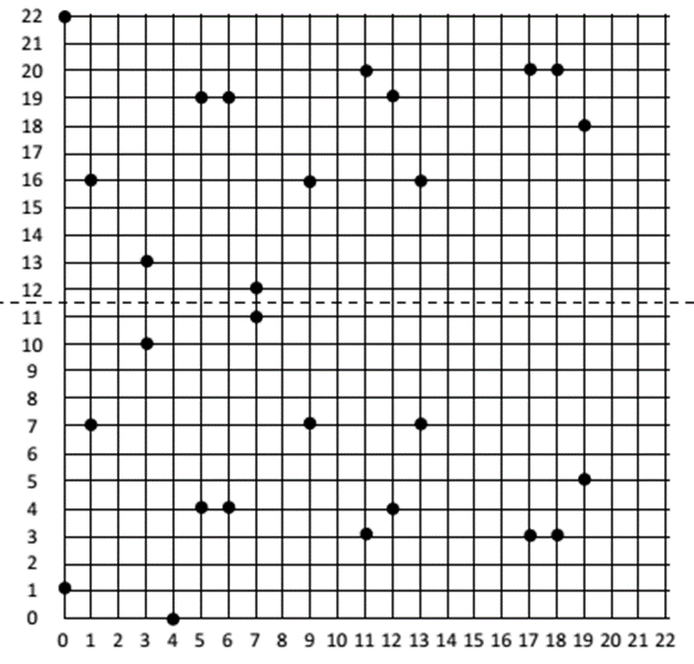 Các điểm đối xứng với nhau qua đường y = 11.5 . Riêng điểm (4, 0) xem như là đối xứng với chính nó.