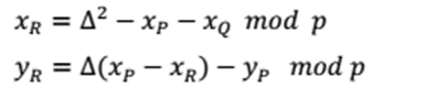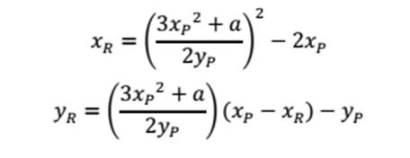 Tương tự, thực hiện tính tọa độ của điểm R= P + P = -S, khi yp ≠ 0 ta có: