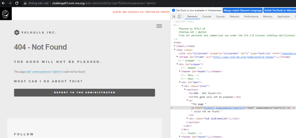 Ý tưởng là mình sẽ truyền thêm một thuộc tính vào thẻ này và dẫn đến host của mình, ở đây mình dùng onmousemove khi trỏ chuột vào thì nó sẽ chạy đoạn js bên trong. Ban đầu mình thử