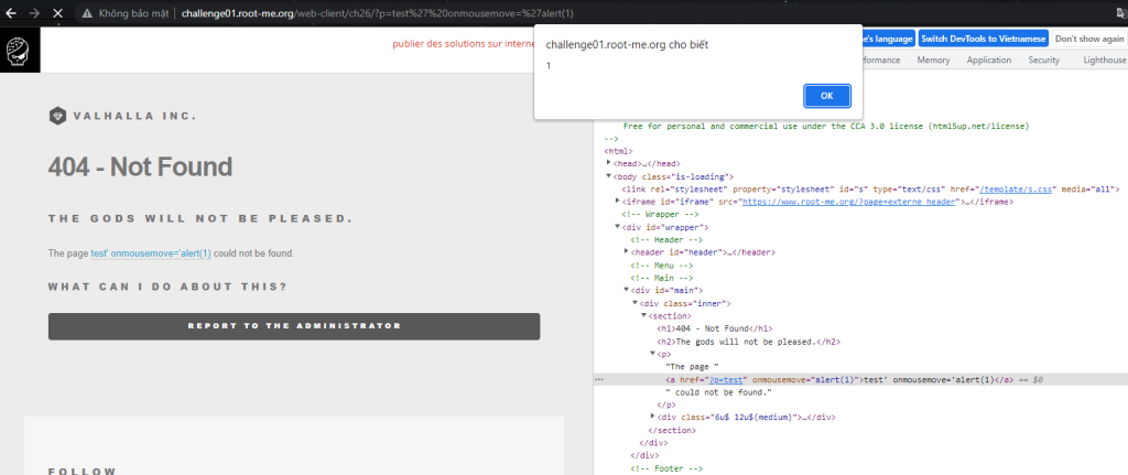 Tương tự như chall trên mình sẽ tải một đoạn script dẫn đến host của mình kèm theo admin, ở đây mình sử dụng thẻ img với thuộc tính onerror, nếu đường link dẫn đến ảnh bị lỗi thì nó sẽ tự động thực thi đoạn script bên trong mà không cần thao tác của người dùng
