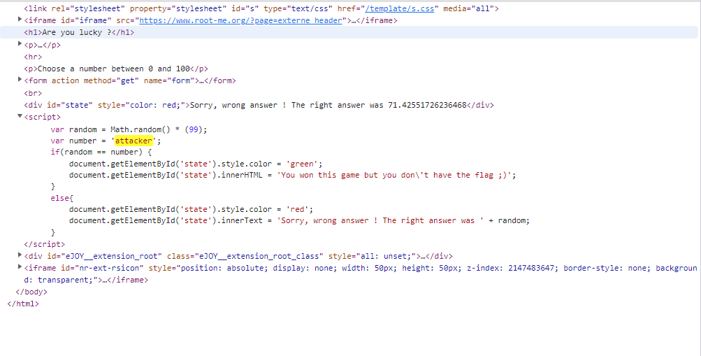 Chall này có một thanh input và nó như một trò chơi nho nhỏ đoán số được sinh ra ngẫu nhiên và ghi lại input vào đoạn mã script