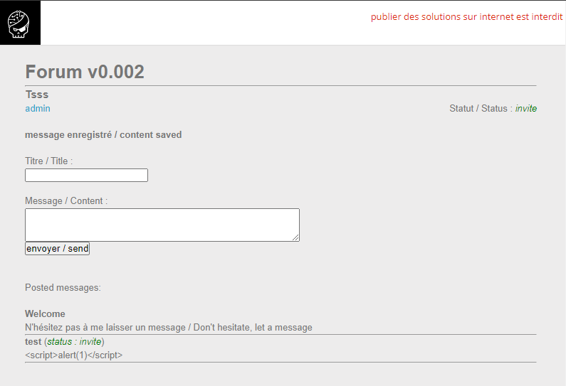 Chall này có một tính năng gửi tin nhắn và lưu trữ lại sau đó admin sẽ đọc chúng, ban đầu mình thử kiểm tra XSS bằng cách nhập vào message <script>alert(1)</script>