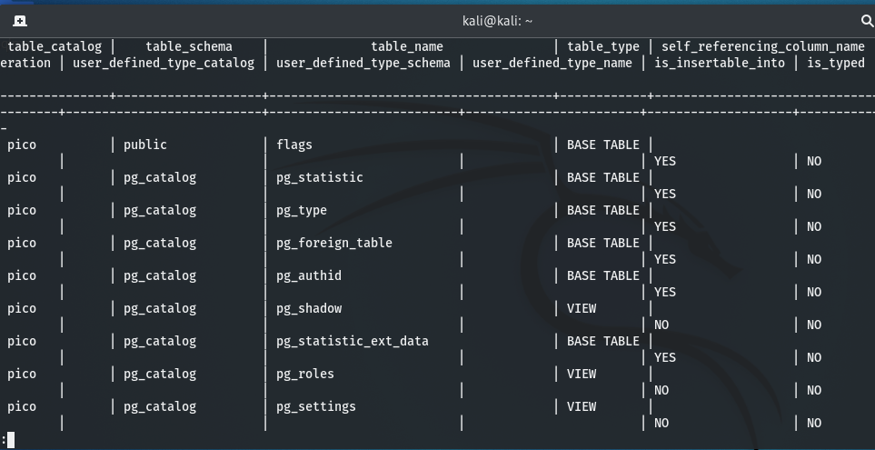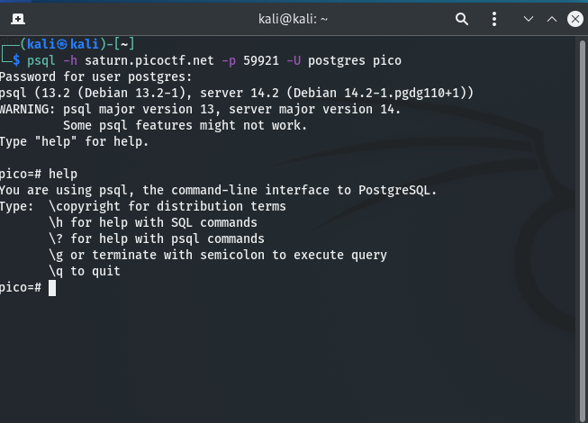 - Chall này phải kết nối đến PostgreSQL, ở đây mình sử dụng kali