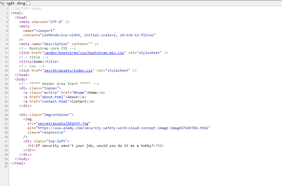 - Bài này thì không có gì chỉ cần mở source code lên là thấy flag