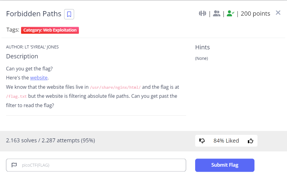 - Đề bài có gợi ý cho ta thư mục chứa flag và thư mục hiện tại