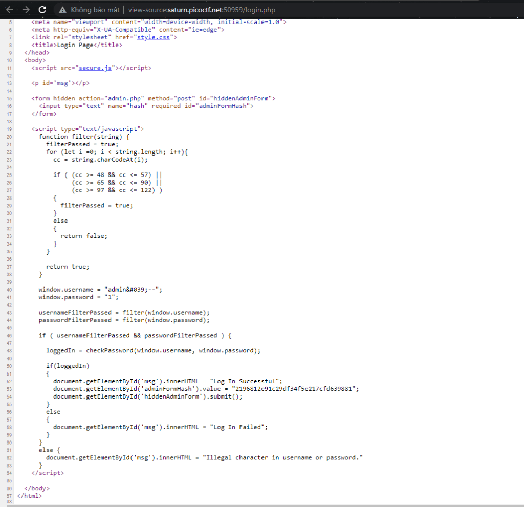- Tuy rằng không được nhưng mình lại thấy yêu cầu được gửi đến login.php, nên mình tiếp tục kiểm tra source code trang này