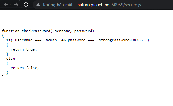 - Và mình thấy nó có bao gồm 1 file js nữa là secure.js khá đáng nghi nên mình keierm tra và được kết quả