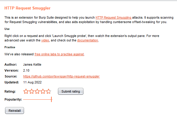 Nếu sử dụng BurpSuite Pro, ta có thể check lỗi HTTP Request Smuggling khi dùng với Active Scan, tải extension HTTP Request Smuggler:
