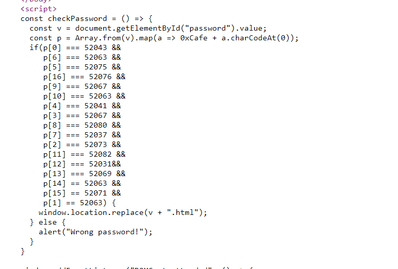 - Đây chính là cách mã tìm password, với 0xCafe khi nhét vào console trên trình duyệt thì được giá trị 51966