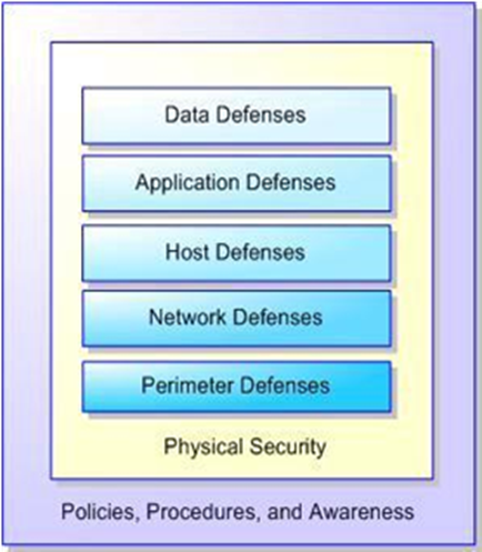Mô hình phân lớp phòng thủ chiều sâu phân loại các giải pháp bảo mật chống các yếu tố tấn công – những vùng điểm yếu – mà hacker có thể sử dụng để đe dọa môi trường máy tính. Các yếu tố tấn công bao gồm: