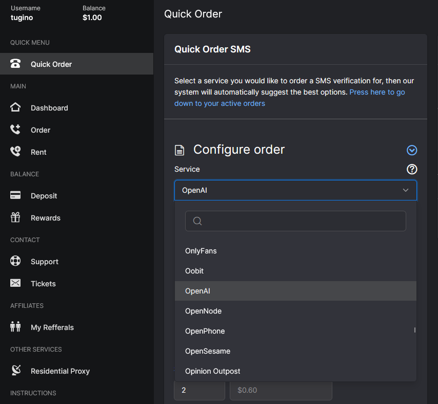 Bước 5: Qua lại SMSPool chọn “Quick Order” rồi chọn Country là “United States”.