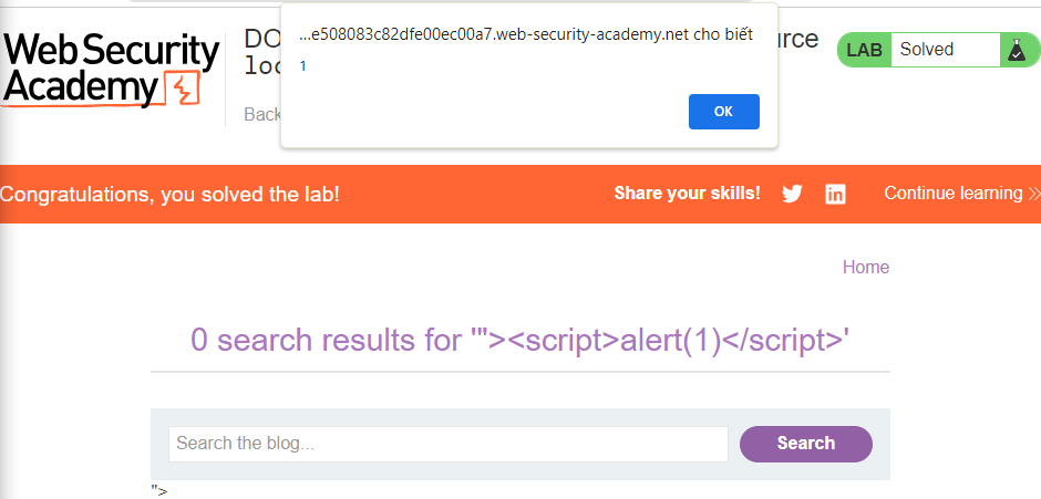 => Điều này có thể gây ra lỗi open redirect thông qua DOM vì source location.hash được xử lý theo cách không an toàn. Nếu URL chứa đoạn băm bắt đầu bằng https:, mã này sẽ trích xuất giá trị của location.hash và đặt nó làm thuộc tính location của thuộc tính window. Kẻ tấn công có thể khai thác lỗ hổng này bằng cách tạo ra URL sau:
