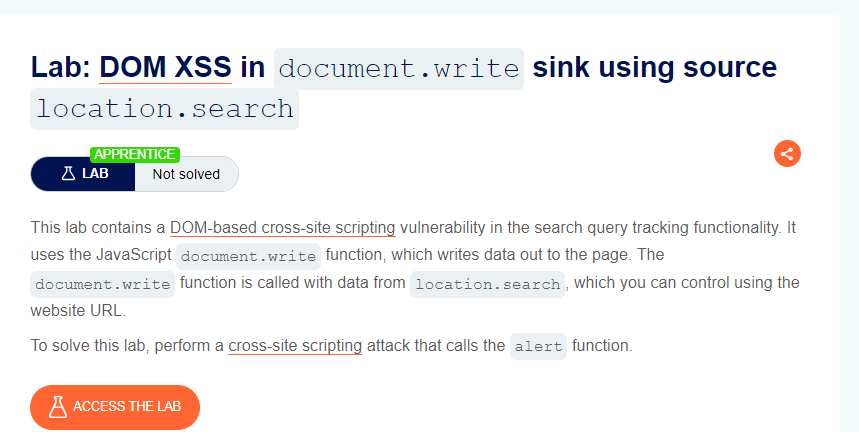 Lab 1: DOM XSS from source location.search to sink ducument.write