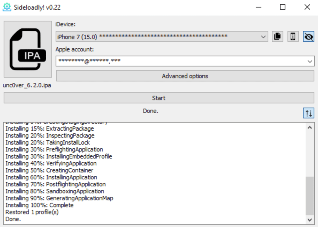 - Bước 5: Sau khi công cụ hiện Done ở dòng cuối cùng là quá trình cài đặt IPA đã hoàn tất
