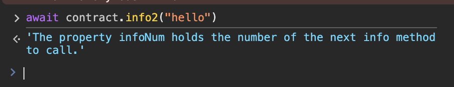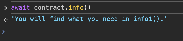 Sau khi submit câu lệnh contract.info(), nó lại muốn ta vào info1()